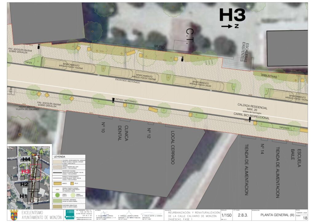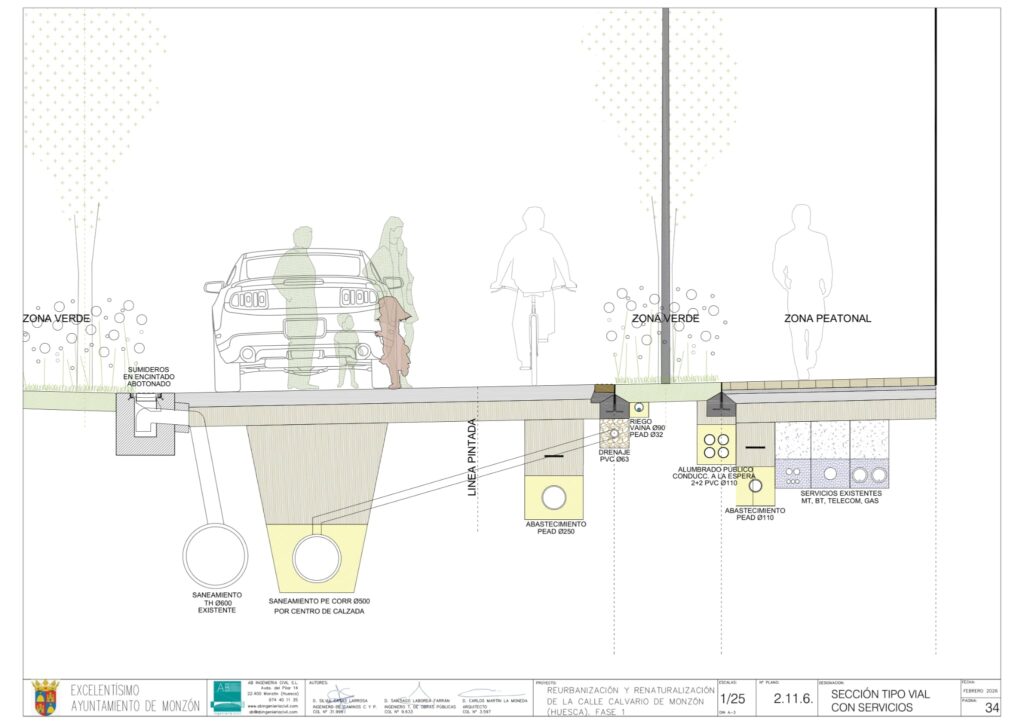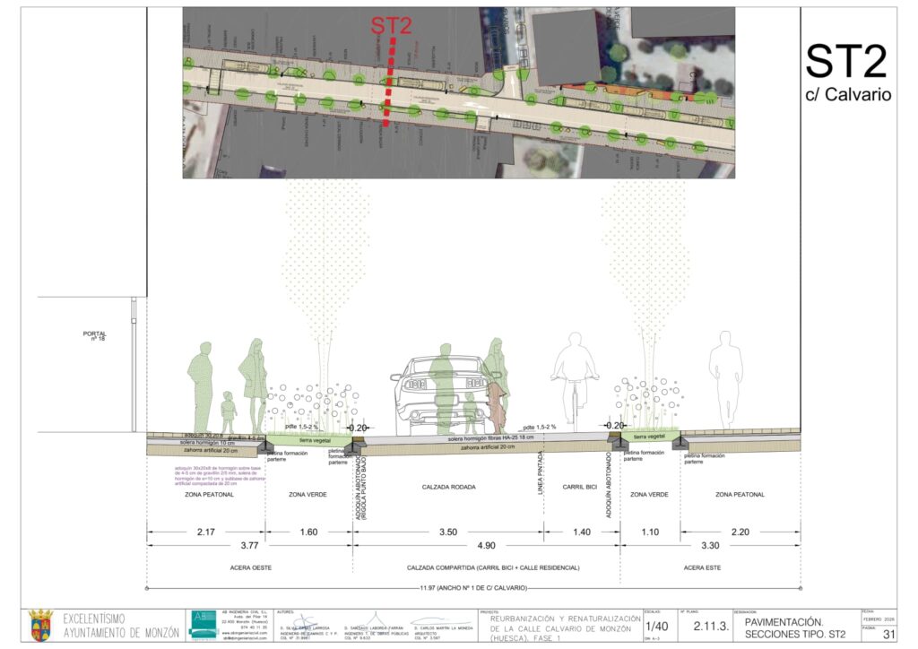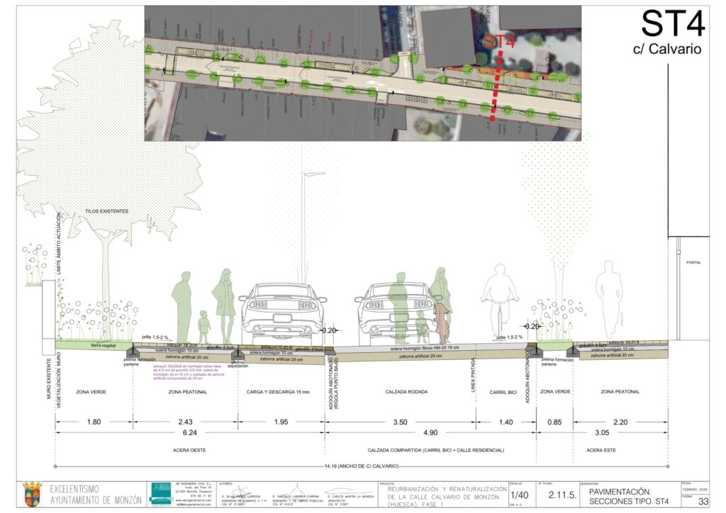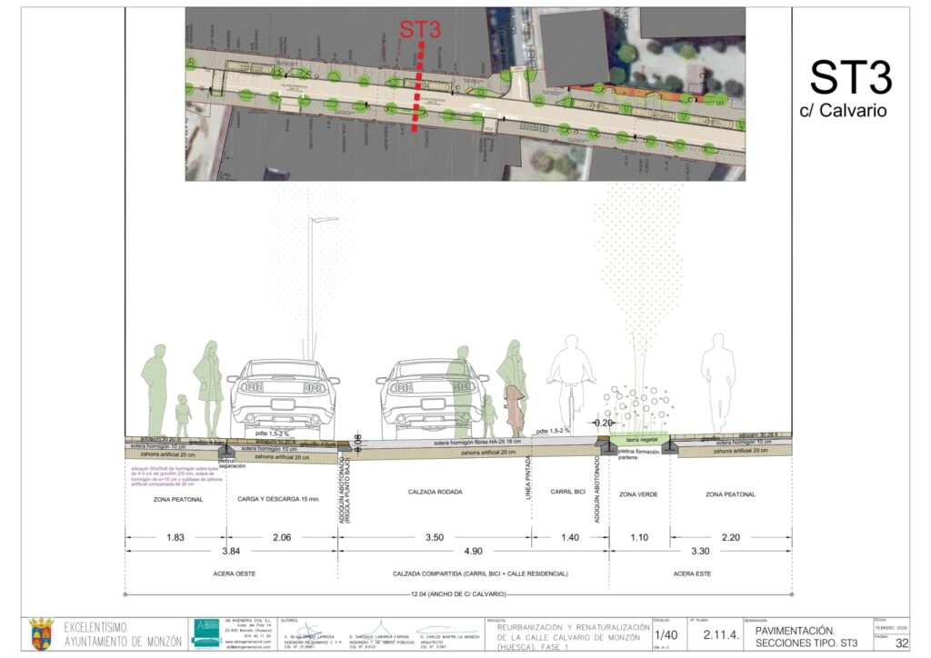 El Ayuntamiento de Monzón impulsa la actuación de renaturalización y reurbanización de la calle Calvario, una intervención estratégica orientada a mejorar la calidad del espacio público, la movilidad y el confort urbano en uno de los ejes residenciales y escolares más relevantes de la ciudad.